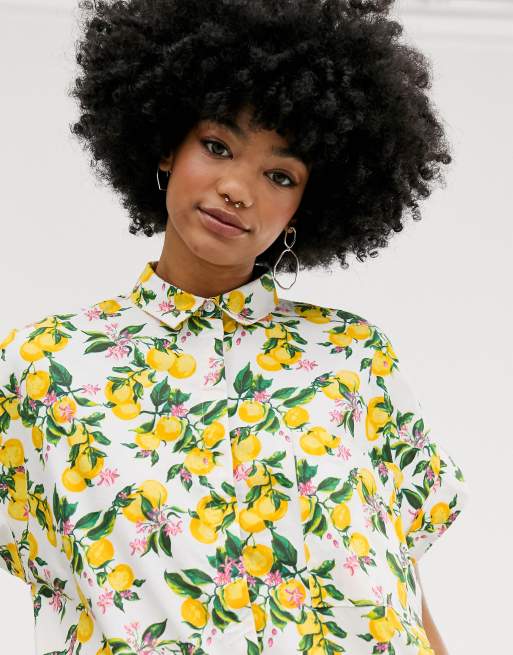 Amazon Yellow Lemon Long Shirt Dress for Women Long Sleeved Very well made.