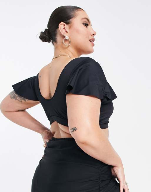 ASOS DESIGN Curve mix and match flutter sleeve wrap bikini top in black Very well made.