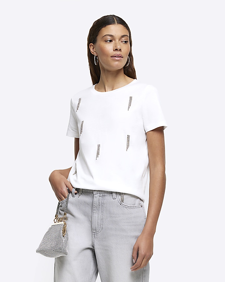 White diamante embellishment t shirt River Island Very well made.
