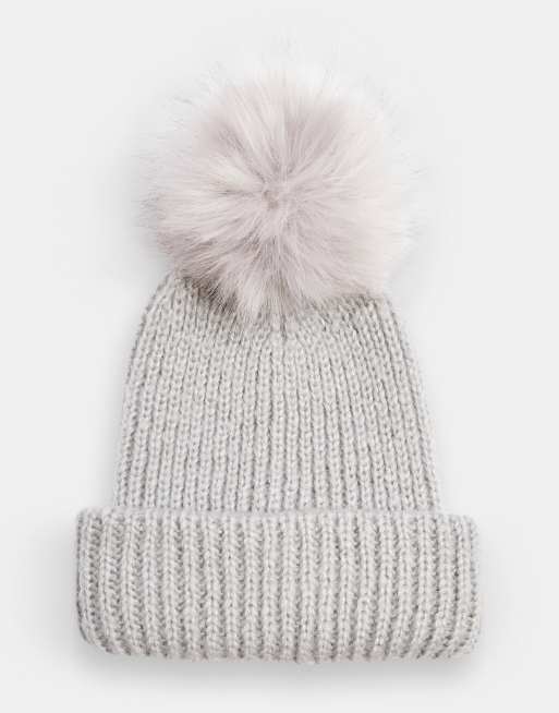 Topshop bobble hat with faux fur pom pom in black BLACK ASOS Very well made.